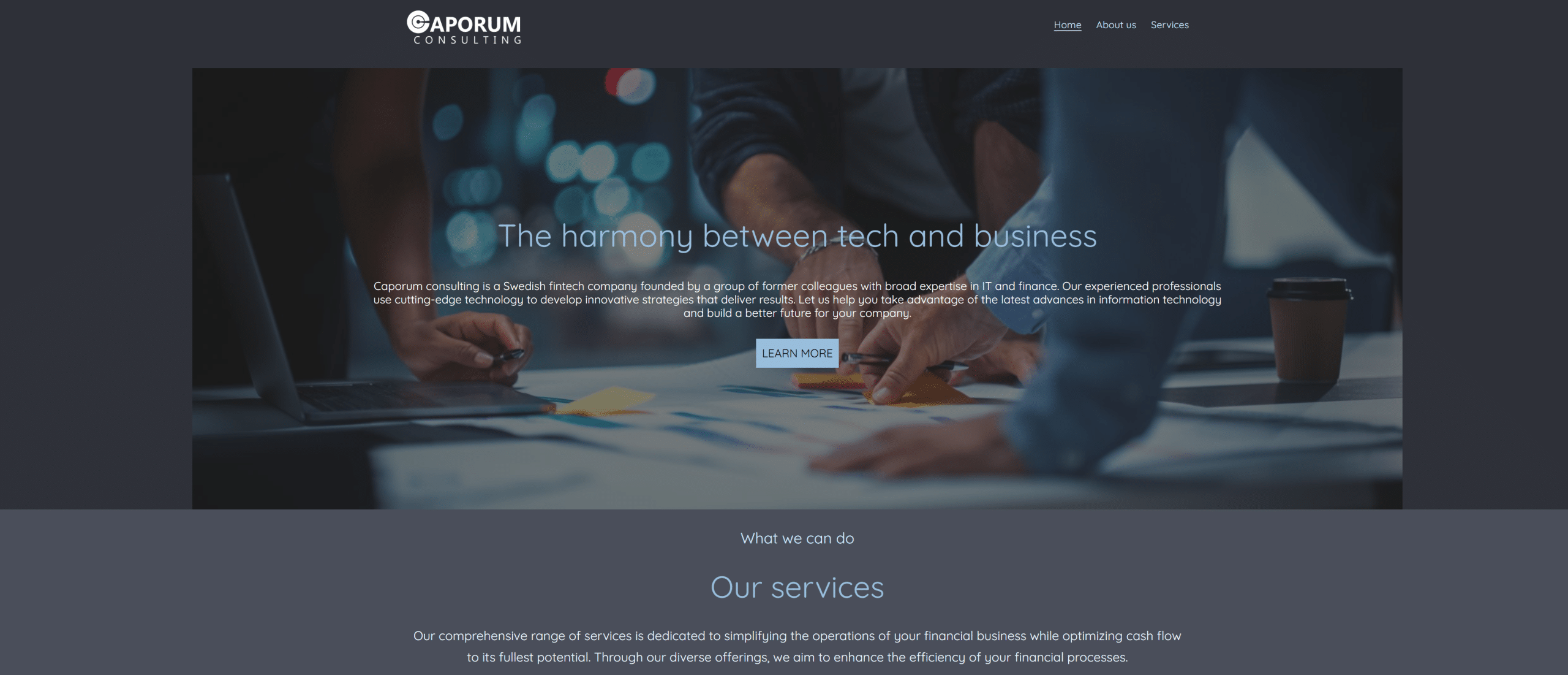Caporum Consulting AB är ett svenskt fintech-företag med fokus på att utveckla avancerade teknologilösningar för den finansiella sektorn, särskilt inom inkasso och kundhantering. Företaget grundades av en grupp erfarna IT- och finansspecialister och erbjuder skräddarsydda tjänster för att effektivisera och digitalisera finansiella processer.